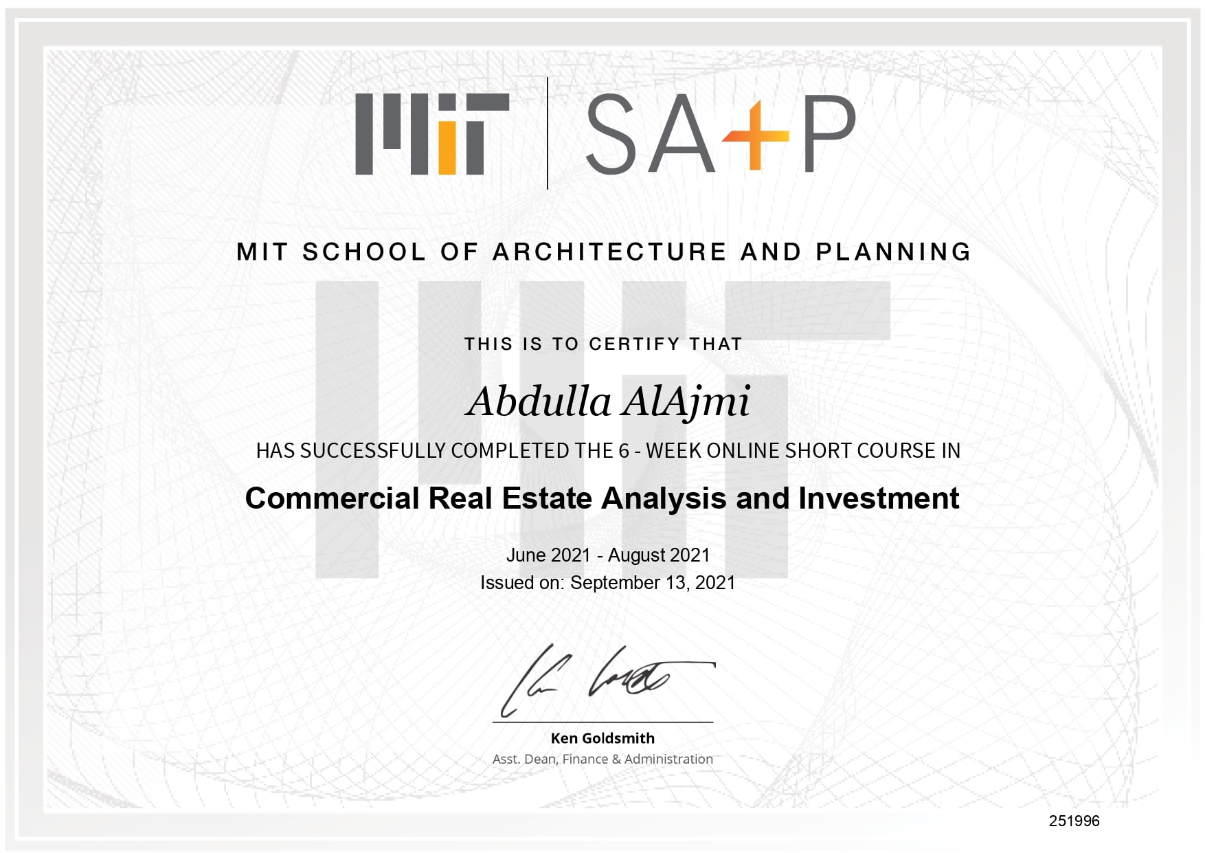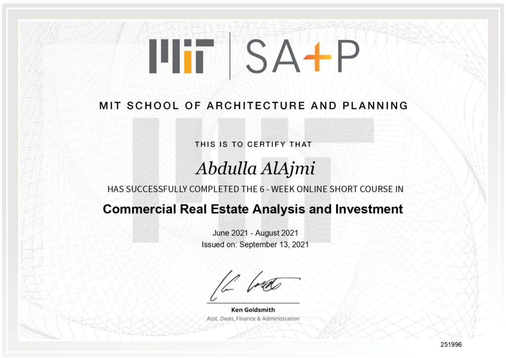 - Commercial Real Estate Analysis and Investment – Massachusetts Institute of Technology (MIT)
