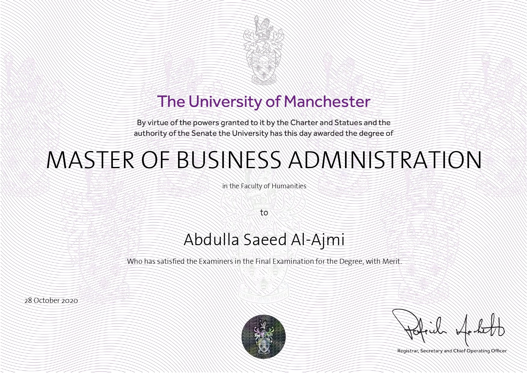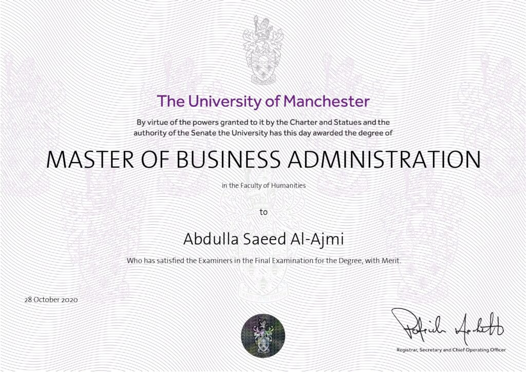 - MBA – University of Manchester